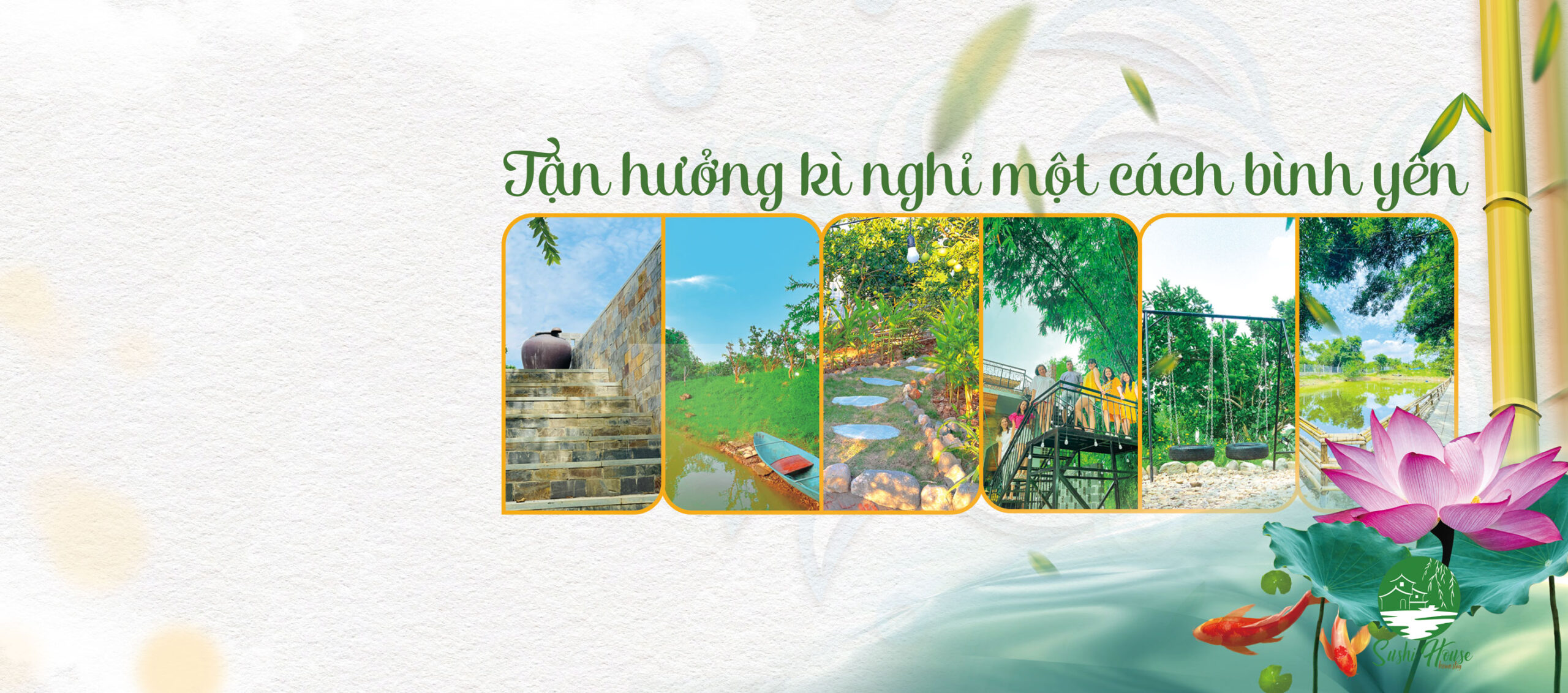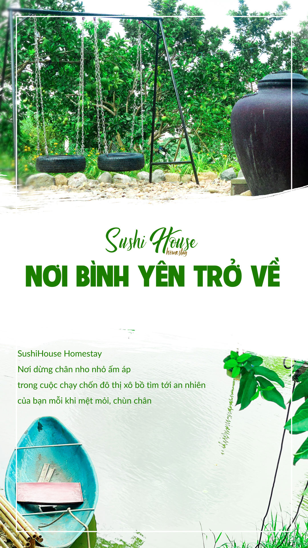 Nơi bình yên buông bỏ ưu phiền và thanh bình với âm thanh của thiên nhiên. Một trải nghiệm nghỉ dưỡng sẽ thực sự tuyệt vời khi tại đó bạn có thể cho những người yêu thương một mùa thu làm cho xao xuyến cùng những góc chill nho nhỏ ẩn sau tàng cây, góc tường với đồ ngon do chính bạn chuẩn bị & không khí trong lành luôn chờ đợi bạn tới khám phá.